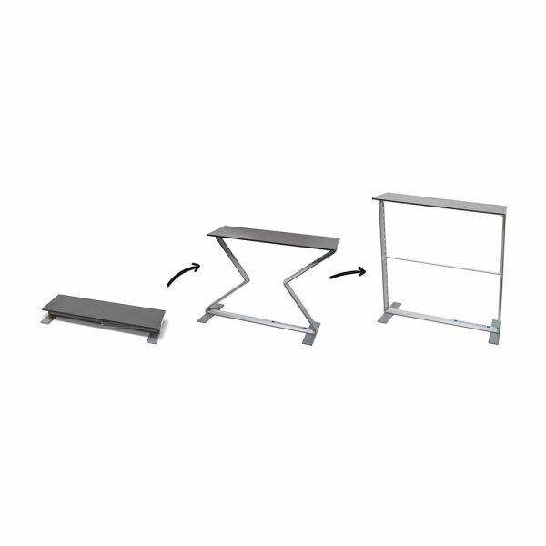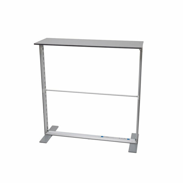 Deze compacte, verlichte balie combineert een strak design met maximale impact. Met een slank aluminium frame van slechts 85 mm en een stijlvol zwart tafelblad is dit display ideaal voor beurzen, promoties of retailomgevingen. Ondanks het compacte formaat kan het tafelblad tot 5 kg dragen – perfect voor folders, lichte producten of decoratie.