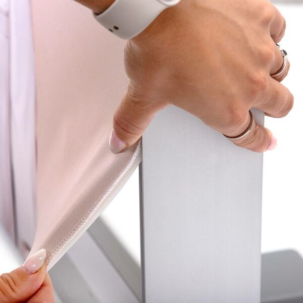 Eenvoudig te wisselen prints: De textielprint met siliconenrand is snel te vervangen – ideaal voor wisselende boodschappen of acties.