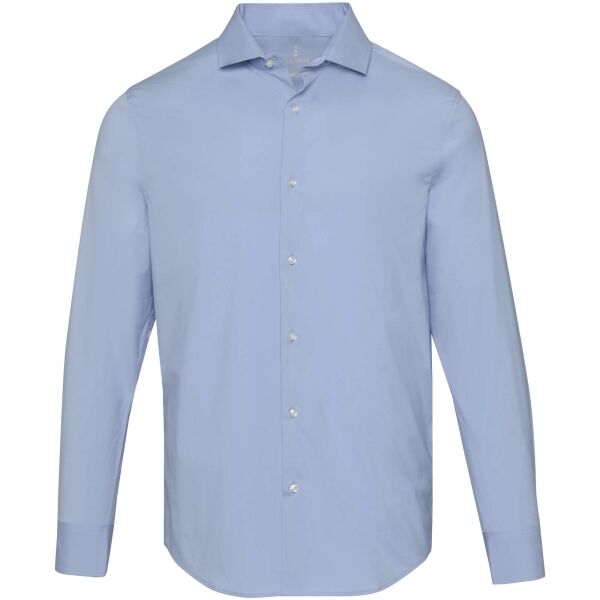 Carnelian heren poplin overhemd met lange mouwen. Moderne elegantie gecombineerd met extra draagcomfort. Gemaakt van BCI-gecertificeerd katoen met stretch, met een fijn 30-denier tweedraads gesponnen structuur voor een gladde, duurzame en luxe uitstraling. De lichte poplin binding geeft een frisse, strakke look. Regular fit voor bewegingsvrijheid en comfort. Voorzien van een klassieke rechte kraag, ideaal voor werk en casual gebruik.