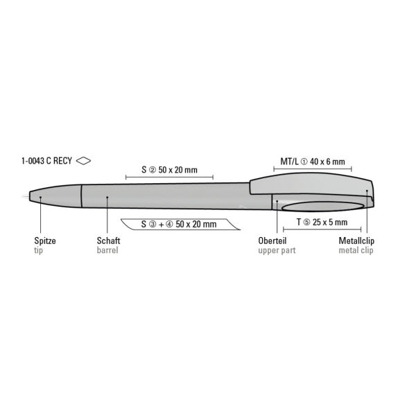 Twist ballpoint pen with opaque mat housing made from 100% recycled post-consumer plastic. Metal clip matt chromed.