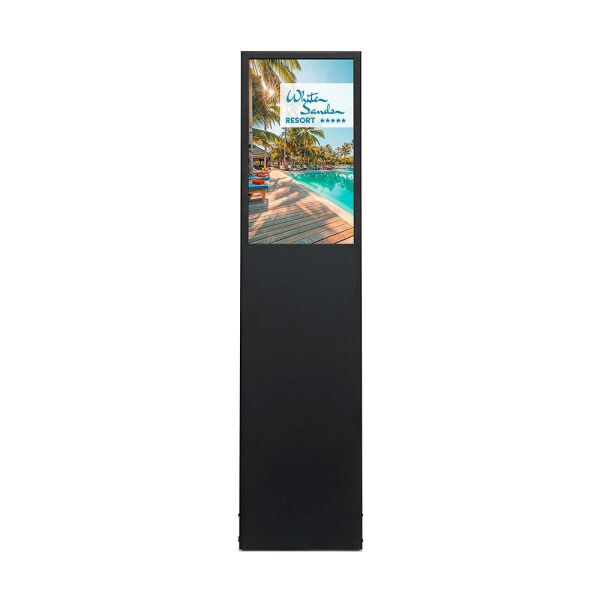 Dit compacte digitale display biedt een moderne en ruimtebesparende oplossing voor digitale presentaties – ideaal voor omgevingen waar flexibiliteit, een strak design en eenvoudig transport belangrijk zijn. Verkrijgbaar in 24" en 32" schermformaten, is het perfect geschikt voor evenementen, retailomgevingen en informatieve toepassingen in beperkte ruimtes.