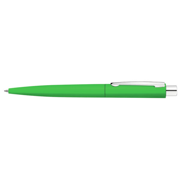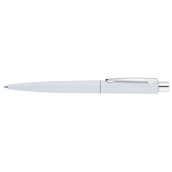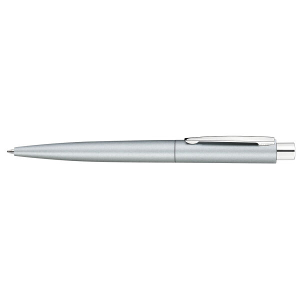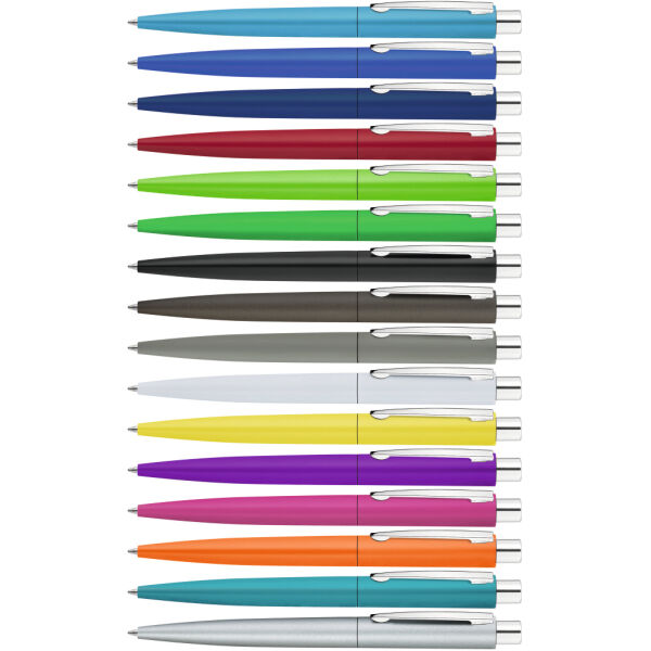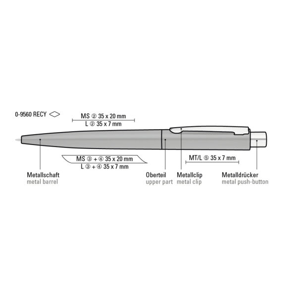 Metal retractable ballpoint pen with matt lacquered housing made from recycled aluminium. Metal clip and push-button chrome plated.