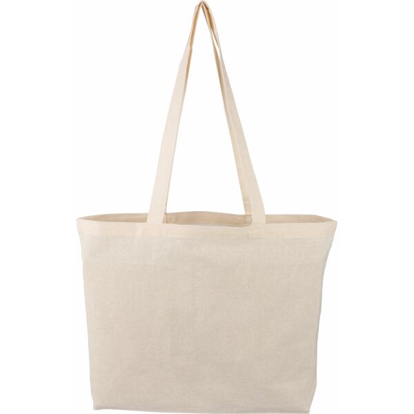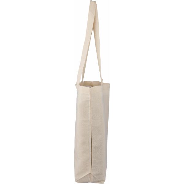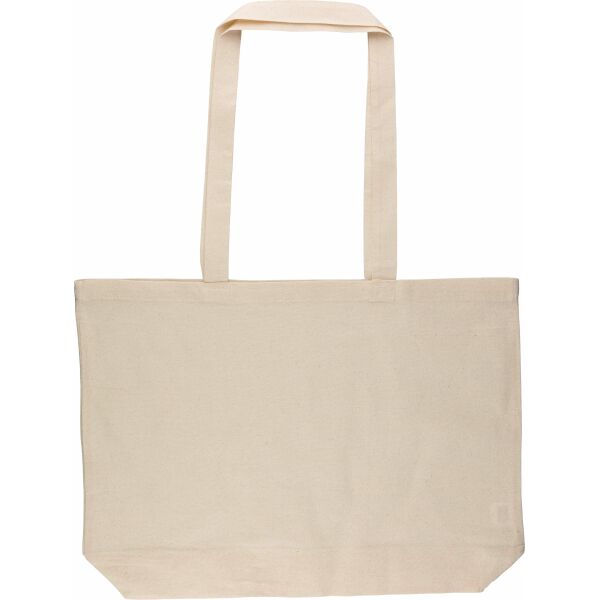 Katoen (14 g/m²) boodschappentas in natuurlijke kleur. Afmeting 48 × 34 × 10 cm met 70 cm lange hengsels (2,5 cm breed). Dit product is OEKO-TEX® STANDAARD 100 gecertificeerd.