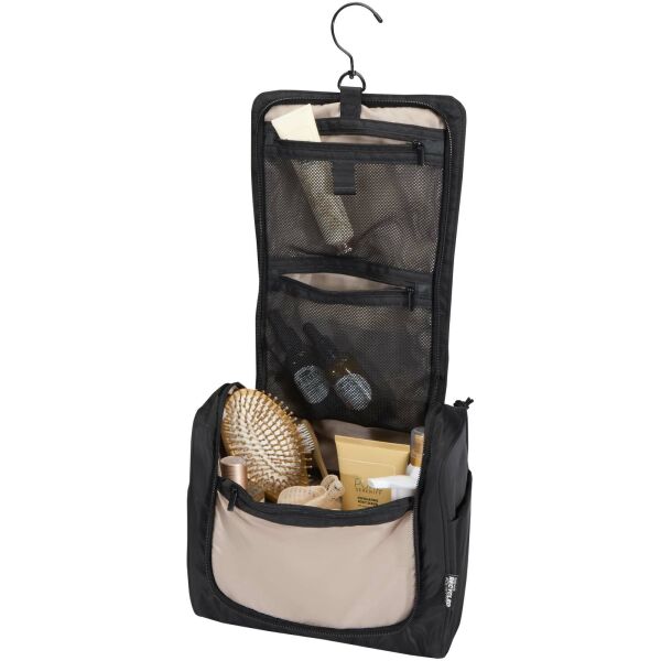 De Puffer hangbare toilettas is gemaakt van GRS-gecertificeerde gerecyclede materialen en heeft een uniek ontwerp voor dagelijks gebruiksgemak. Deze toilettas van 8 liter heeft een ruim hoofdvak met zes interne vakken, twee externe zijvakken en een handige haak om op te hangen aan deuren of handdoekrekken. Een gevoerde handgreep zorgt voor comfortabel dragen, terwijl de kenmerkende puffer-vulling stijl en bescherming toevoegt. Licht van gewicht en waterafstotend, zodat je toiletartikelen altijd georganiseerd en veilig blijven, waar je ook reist.